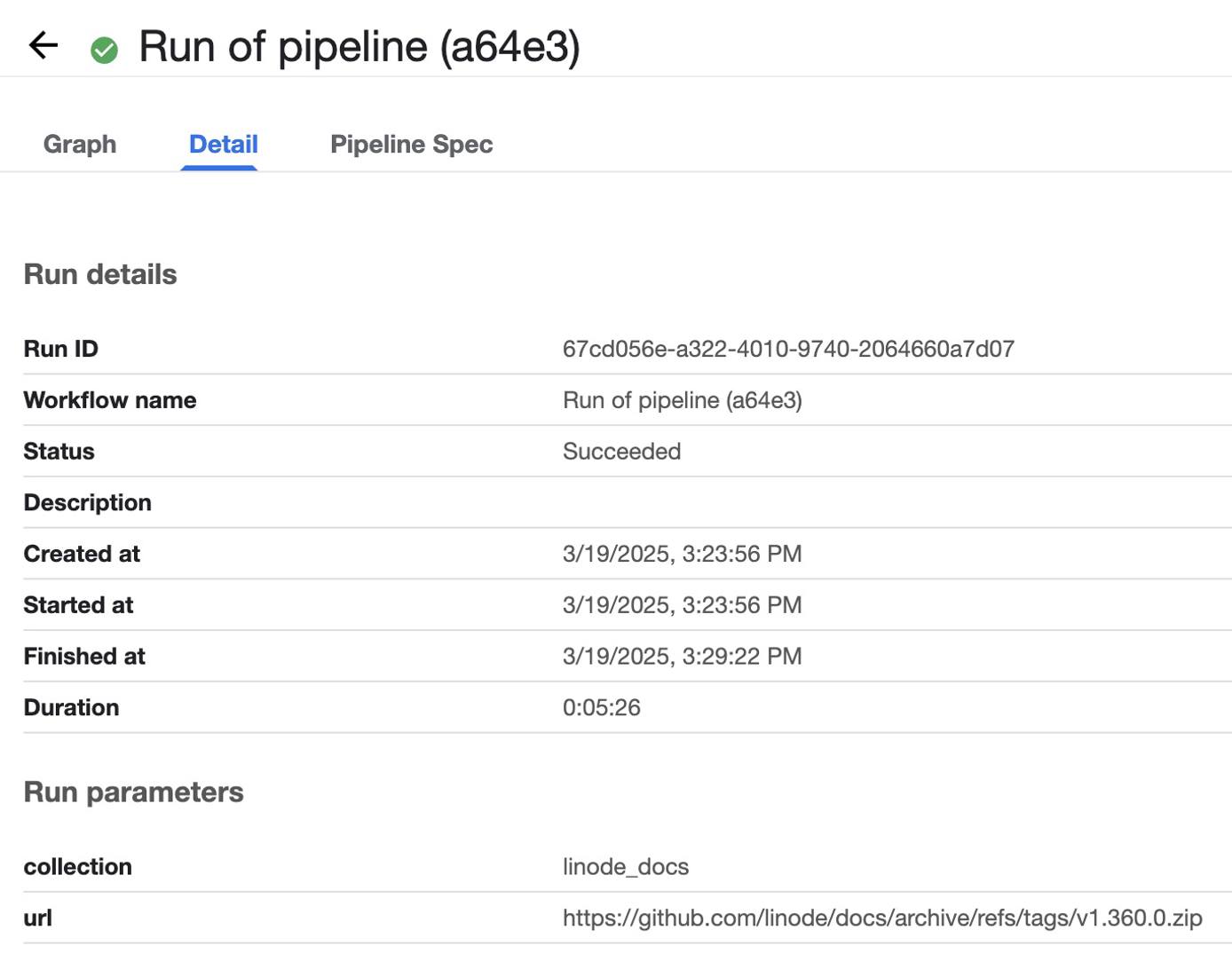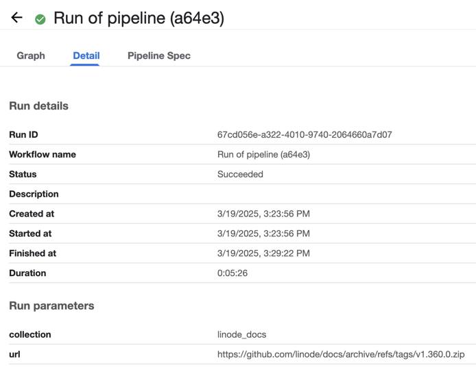 for collection-string and the following GitHub URL for url-string:https://github.com/linode/docs/archive/refs/tags/v1.360.0.zip