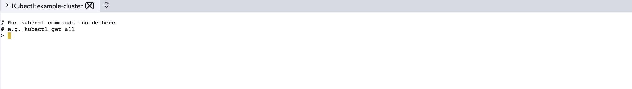 A new dialog appears with a command-line prompt. You are able to use kubectl to interact with your cluster: